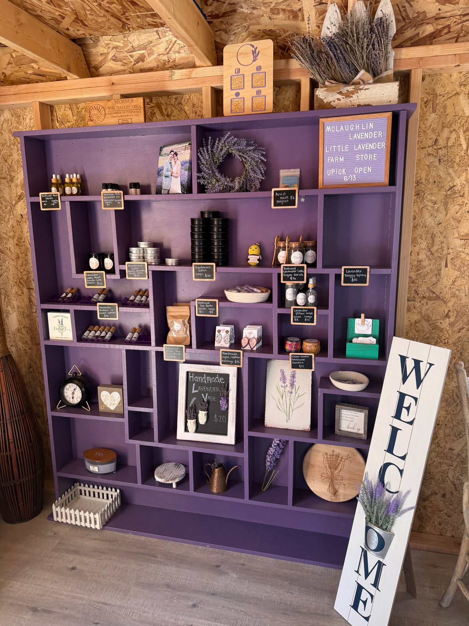 A cozy, light-filled space nestled at Among The Trees Botanical Lavender Farm and lovingly brought to life by the McLaughlin Lavender team. This little shop is more than just a store—it’s a dream come true, built with heart, hard work, and a whole lot of lavender love.