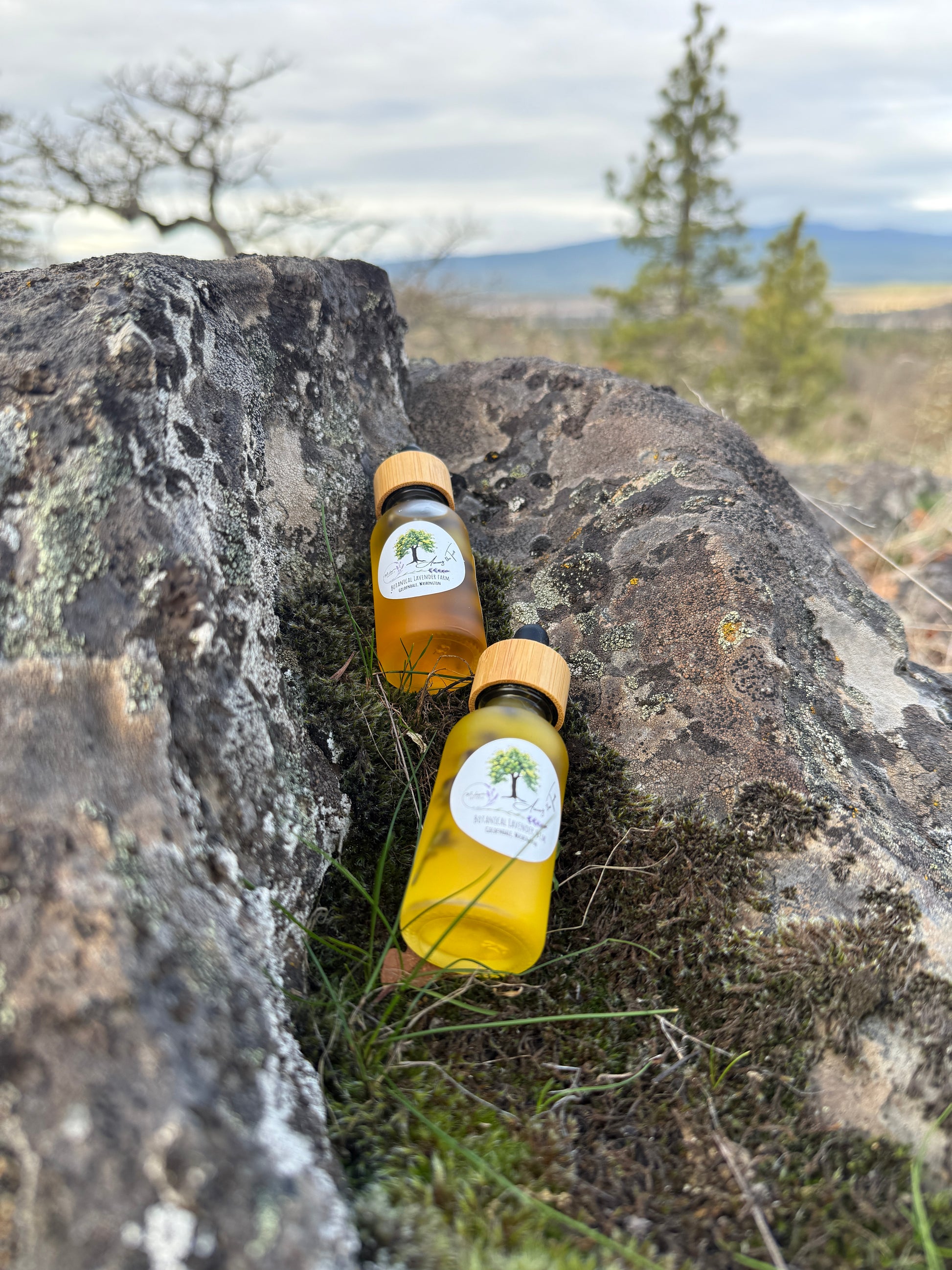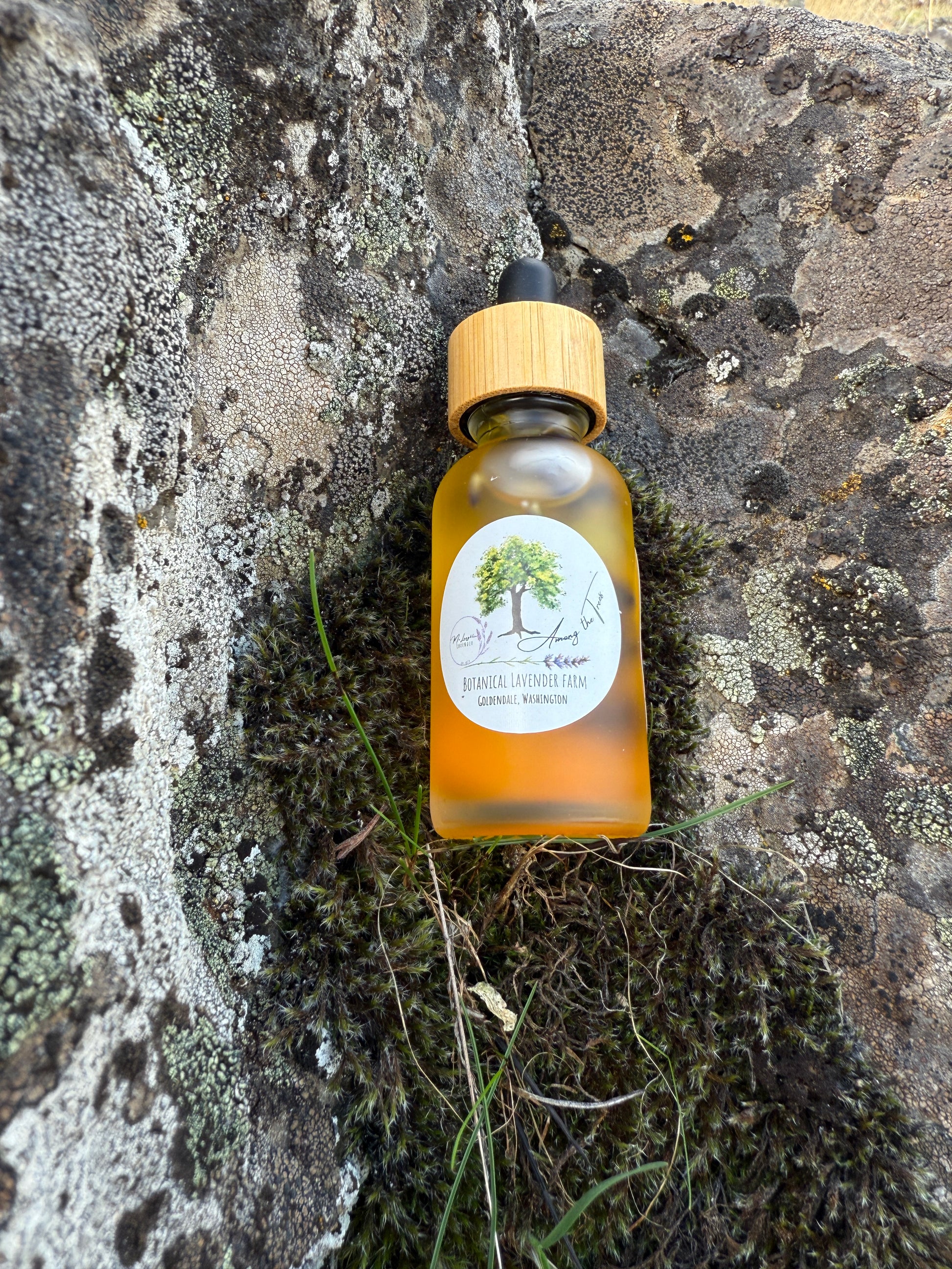 This blend begins with soothing jojoba oil infused with calming botanicals like lavender, calendula, and chamomile—known for their skin-loving properties. We add argan oil, vitamin E, carrot seed oil, and a thoughtful mix of essential oils including geranium, frankincense, and tea tree for a lightweight, non-greasy formula your skin will love.